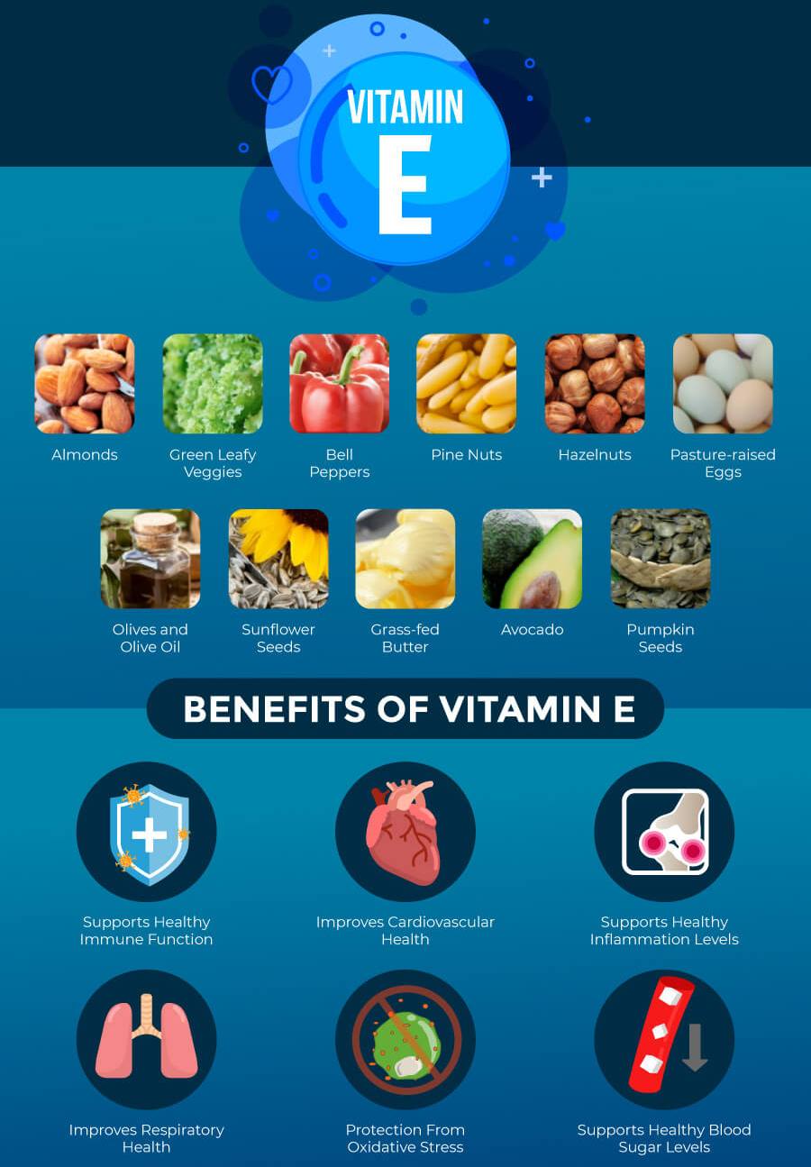 Faktycznie rola witaminy E w ludzkim organizmie jest nieoceniona. Bierze ona udział w dostarczaniu składników odżywczych do komórek, zapobiega procesom zatykania się tętnic, zmniejsza ryzyko wystąpienia ataku serca, wzmacnia ścianki naczyń krwionośnych, chroni czerwone krwinki przed przedwczesnym rozpadem, pobudza układ odpornościowy do pracy, zmiękcza i uelastycznia skórę, poprawia stan psychiczny, łagodzi objawy napięcia przedmiesiączkowego, chroni mózg przed chorobą Alzheimera i Parkinsona, zmniejsza ryzyko wystąpienia cukrzycy typu 2, chroni skórę przed uszkodzeniami wywołanymi promieniowaniem słonecznym, oraz wspomaga prawidłowe funkcjonowanie wzroku. Witaminę E wykorzystuje się także do leczenia męskiej niepłodności.