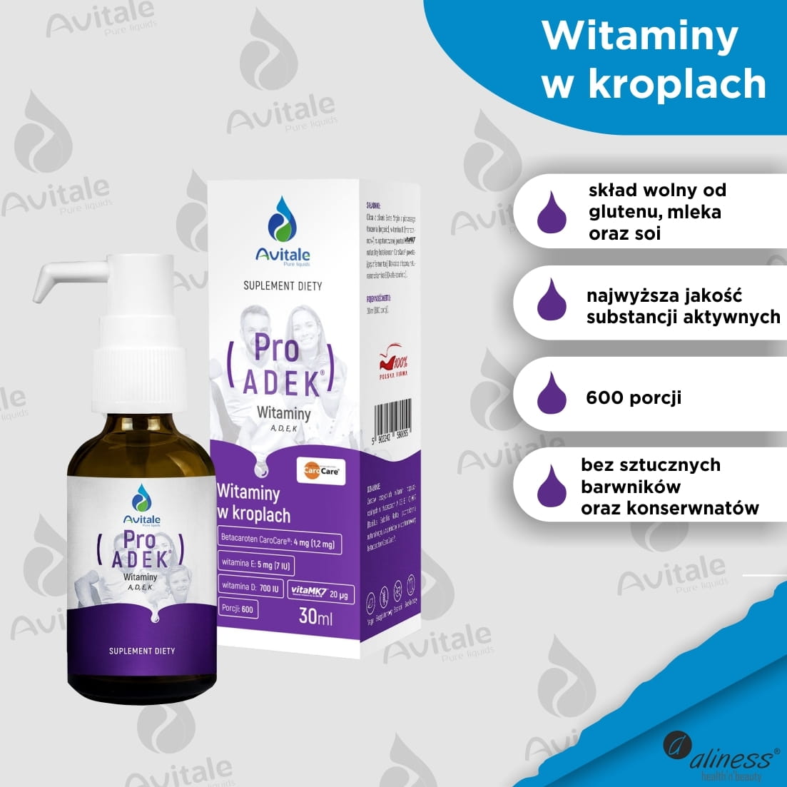 Avitale Witamina ProADEK® z beta karotenem - 30 ml / Aliness Medicaline