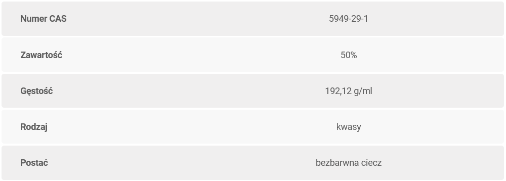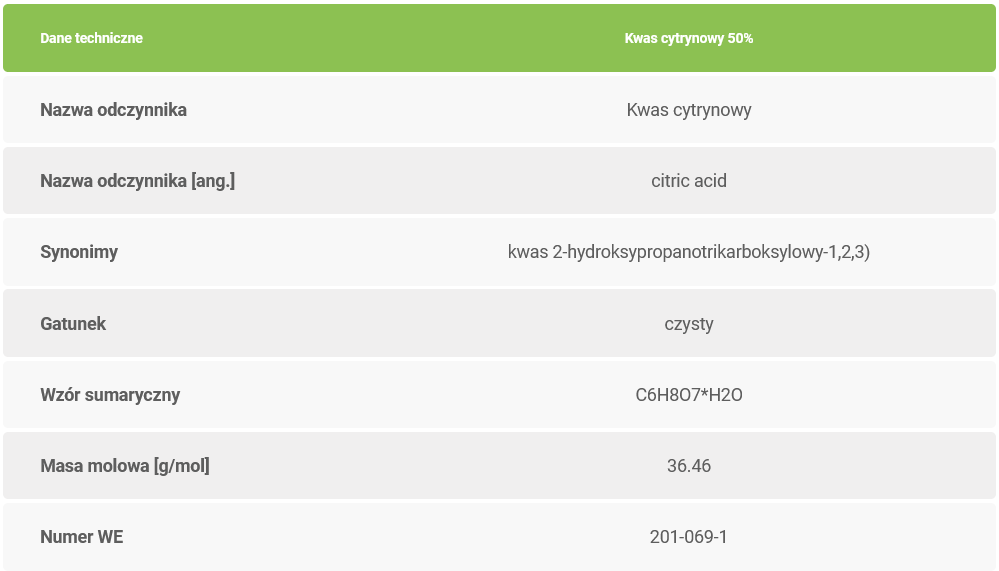 KWAS CYTRYNOWY 50% - WŁAŚCIWOŚCI