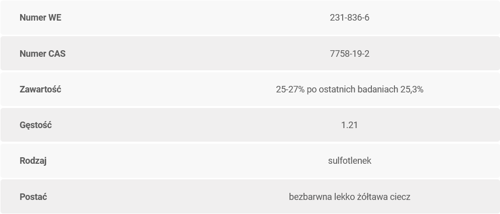 27% Chloran (III) sodu. Dokładność +/- 1%