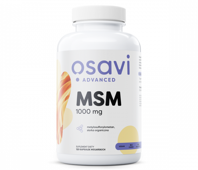MSM marki Osavi to najwyższej jakości formuła zawierająca organiczny i biologicznie aktywny związek siarki (metylosulfonylometan) - minerał który poprawia jakość stawów, regeneruje chrząstkę, hamuje procesy zapalne, zmniejsza dolegliwości bólowe. Poprawia kondycję skóry, włosów i paznokci. Bardzo korzystnie wpływa na budowę mięśni i ścięgien. Siarka jest także ważnym składnikiem białek m.in. kolagenu i keratyny oraz niektórych hormonów i enzymów. Formuła charakteryzuje się wysoką bioaktywnością oraz przyswajalnością. Produkt wegański, w 100% naturalny, wyprodukowany w duchu tzw. czystej etykiety (eng. clean label), nie zawierający wypełniaczy, ani żadnych syntetycznych środków barwiących, smakowych i konserwujących.