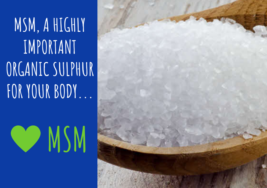 MSM, czyli metylosulfonylometan lub inaczej metylosiarczan metanu, jest organicznym związkiem siarki. Minerał ten poprawia jakość stawów, zmniejsza dolegliwości bólowe, hamuje procesy zapalne, regeneruje chrząstkę. Poprawia kondycję skóry, włosów i paznokci. Bardzo korzystnie wpływa też na budowę mięśni i ścięgien. Spowodowane jest to tym, że siarka jest niezbędna do produkcji keratyny jak również kolagenu.